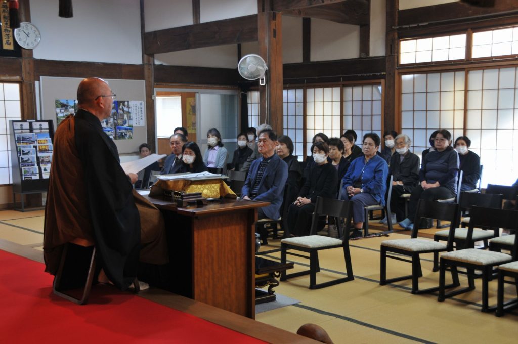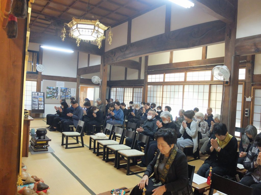 御忌会を勤めました 令和8年4月25日(土)10:00より法然上人の遺徳を偲び、御忌会を勤めました。天気に恵まれ春の陽気に包まれての法要でした。たくさんのご参詣を頂き有難うございました。法然上人は「念仏によってすべての人々が救われるという易行念仏の道」をお開きになりました。この易行念仏の教えは朝廷から庶民に至るまで多くの人々に受け入れられ人々の信仰を集めて今日に至っております。その遺徳を偲びつつ、心新たに日課称名の誓いを胸にお念仏・回向をいたしました。