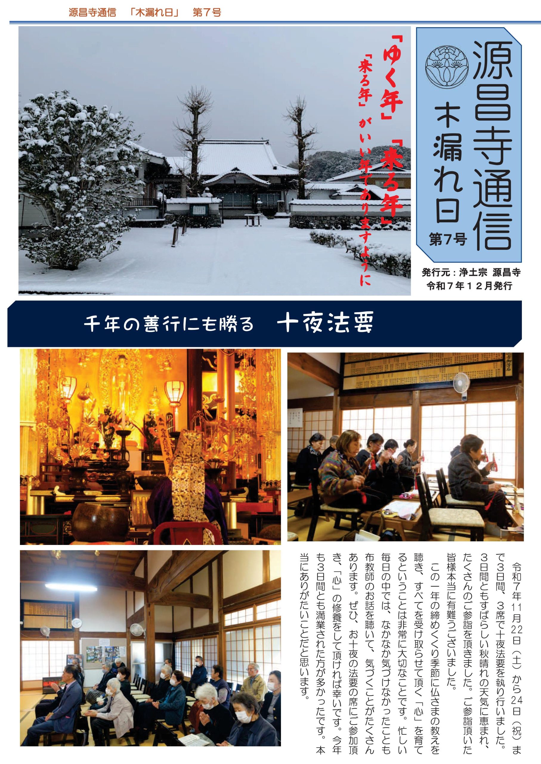 源昌寺通信「木漏れ日第7号」を発行しました!